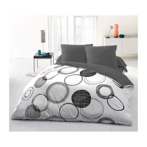 Parure de couette microfibre Audace - 1 housse de couette 240x260 cm + 2 taies d'oreiller 63x63 cm - Gris clair - HOME LINGE PAS