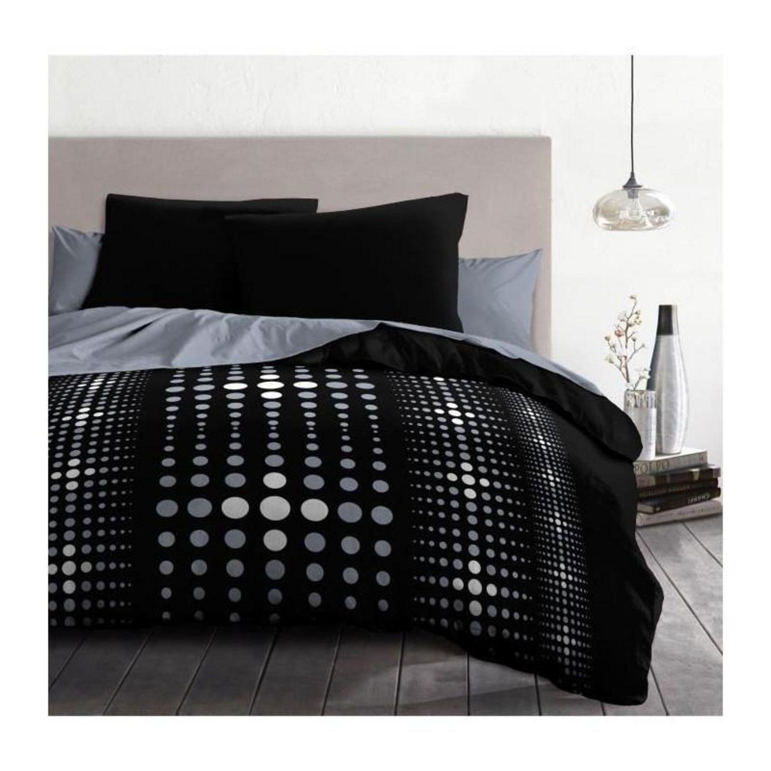 Parure de couette microfibre Steevy - 1 housse de couette 240x260 cm + 2 taies 63x63 cm - Noir - HOME LINGE PASSION