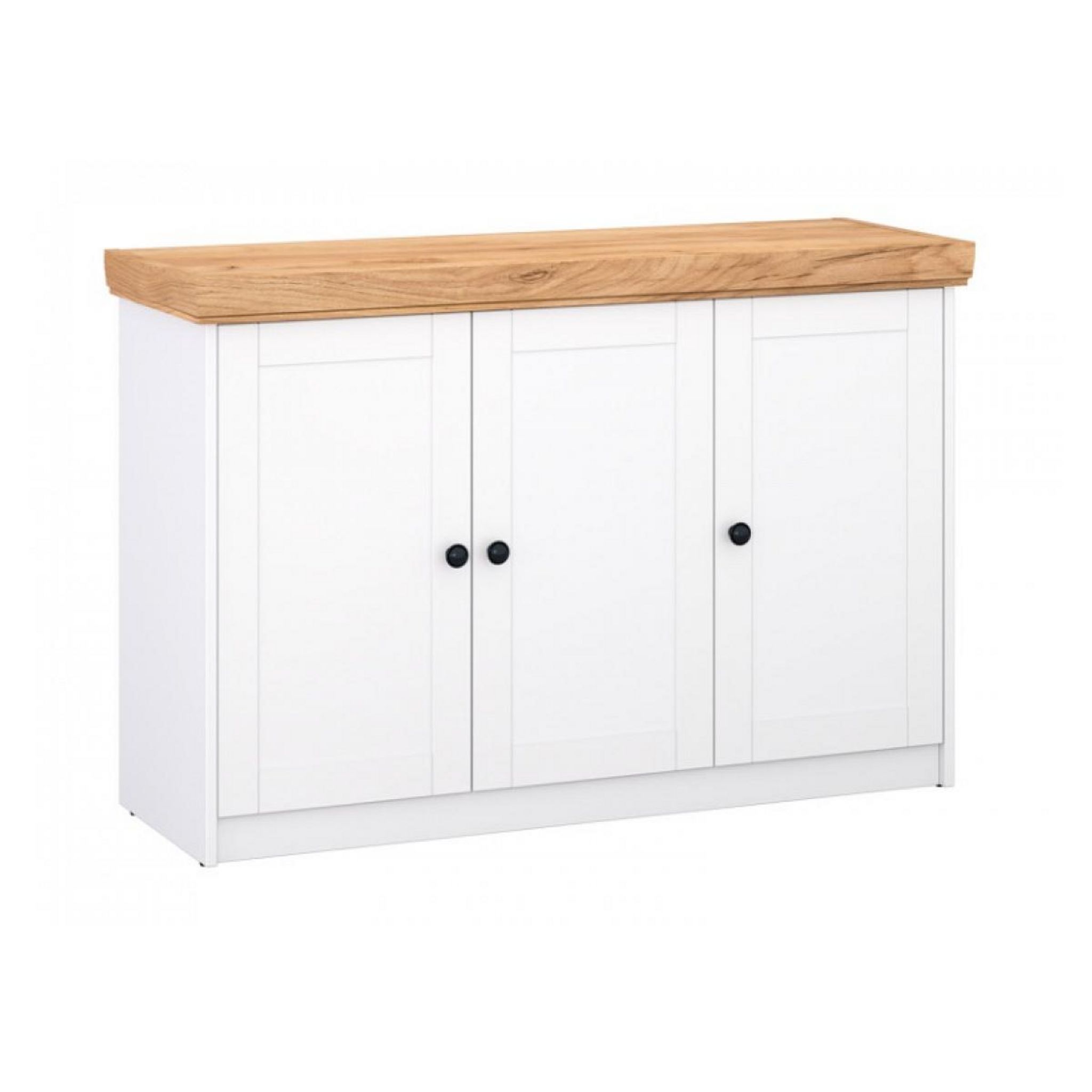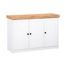 Commode moderne en bois massif avec finition blanche et chêne - 123 x 82 x 42 cm