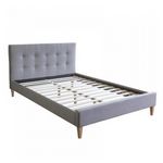 Lit capitonné avec matelas 140x200 et sommier à lattes - gris