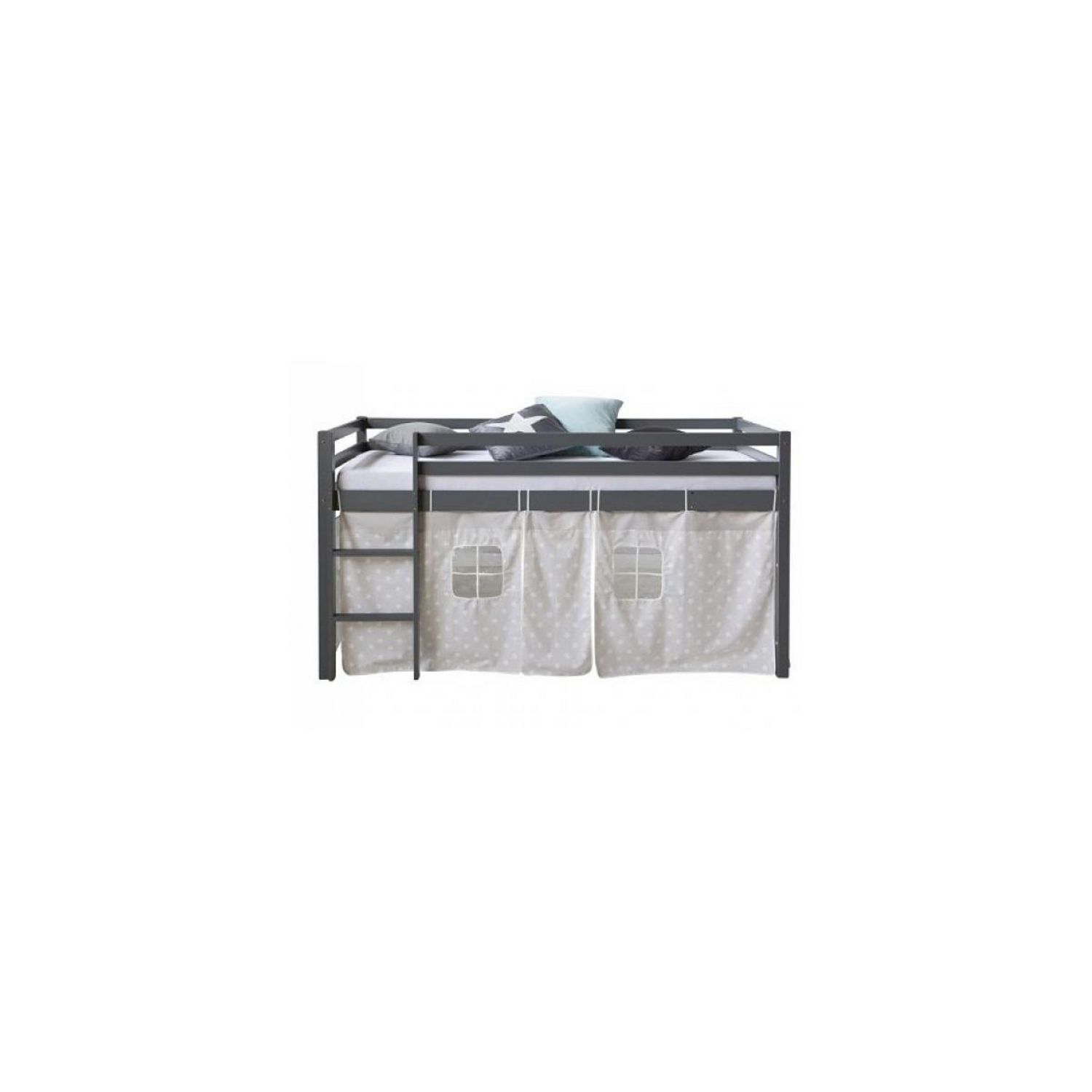 Lit mezzanine 90 x 200 cm gris pour enfants avec echelle et rideaux en tissu