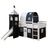 Lit mezzanine avec Tunnel Tour Toboggan Rideau Pirate Noir 90x200