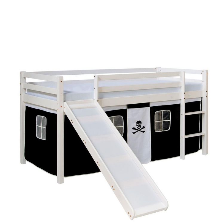 Lit mi-hauteur avec rideaux - noir pirate avec sommier