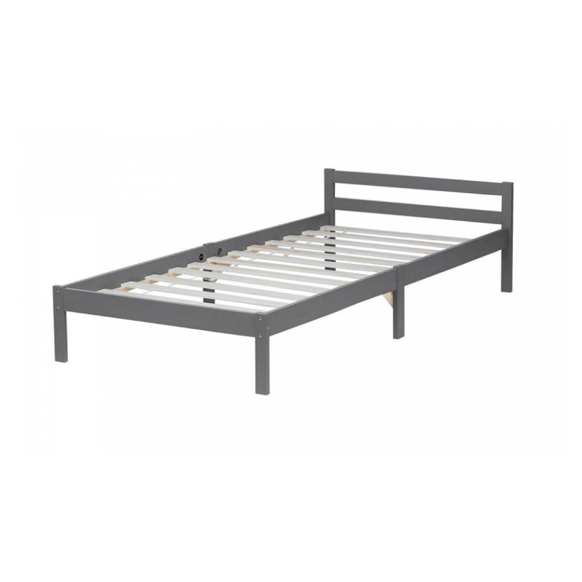 Description du produit Notre confortable lit en bois 90x200 cm impressionne avant tout par sa beauté naturelle, son design intemporel et sa fabrication stable. Que ce soit dans la chambre à coucher, la chambre d'adolescent ou la chambre d'amis, le lit s'intègre parfaitement dans n'importe quelle chambre grâce à son design subtil. Assorti au cadre de lit, dans un gris subtil, il y a un sommier à lattes roulantes gratuit, mais vous pouvez également utiliser votre propre sommier à lattes. Le matelas et la décoration ne sont pas inclus. Détails du produit: lit simple solide 90x200 cm Cadre de lit avec sommier à lattes en bois de pin massif construction sûre les panneaux latéraux divisés sont reliés par d'autres pieds de lit et offrent une stabilité supplémentaire bords et poteaux arrondis Dimensions: Surface de couchage : 90x200 cm Dimensions extérieures du lit (L x P) : 96 x 206 cm Hauteur tête de lit : 50 cm Bord supérieur du côté du lit : 30,5 cm Hauteur de rangement sous le lit : 21 cm Profondeur d'insertion du matelas : 3,5 cm Épaisseur du matériau : 20 mm Grille enroulable (sommier): 13 lamelles Matériel et Couleur: en bois de pin massif Peint en gris Contenu de la livraison : Lit d'adolescent en bois avec sommier à lattes La livraison se fait par service de colis (un colis) Les instructions de montage et les accessoires de montage sont dans la boîte La literie, le matelas et la décoration ne sont pas inclus Livraison: Le lit est livré démonté et doit être assemblé. montage facile pour 1-2 personnes