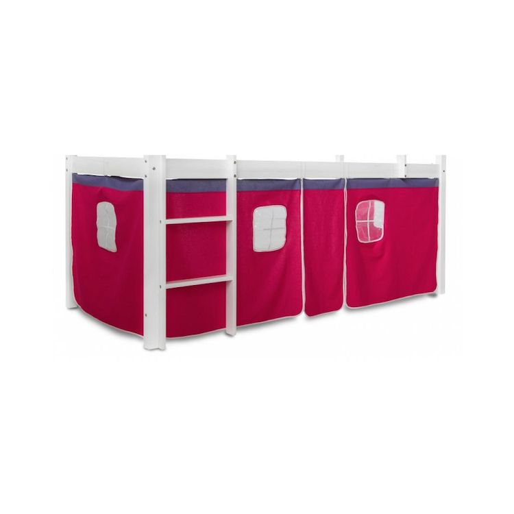 Details: beau rideau de lit pour les lits d'enfants avec fenêtre. Entourage de lit en 3 parties. facile à monter avec des sangles. Matériaux et Couleurs: Rideau 100% coton. Dimensions: pour les mezzanines avec un plan de couchage de 90 x 200 cm et une hauteur de niche de 70 cm. Hauteur du rideau de