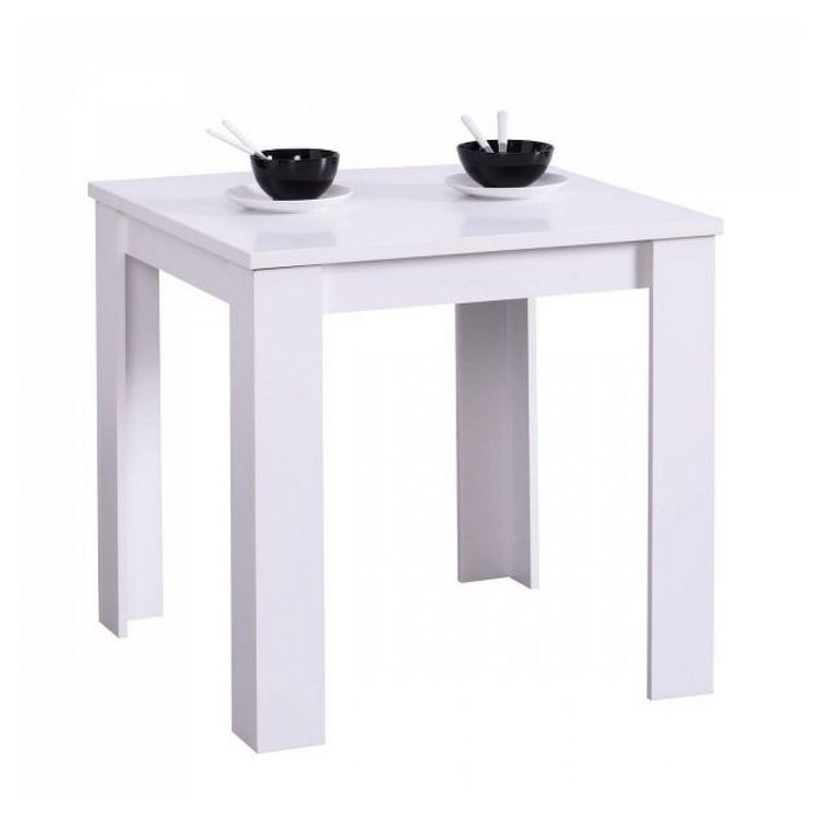 Découvrez notre élégante table à manger de 80x80 cm, parfaite pour les petits espaces. Idéale pour les célibataires et les couples, elle s'intègre harmonieusement dans votre salon ou cuisine grâce à son design intemporel. Sa finition blanche crée une ambiance chaleureuse et accueillante. Conçue pour 2 à 4 personnes, cette table est fabriquée en bois avec une surface en résine de mélamine, résistante aux rayures. Sa structure robuste garantit une stabilité optimale. Dimensions : Longueur 80 cm, Largeur 80 cm, Hauteur 75 cm.