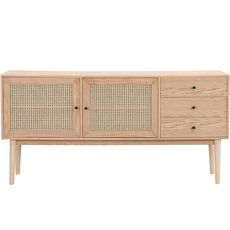 Buffet 2 portes 3 tiroirs en bois et cannage naturel 170 cm - Eden