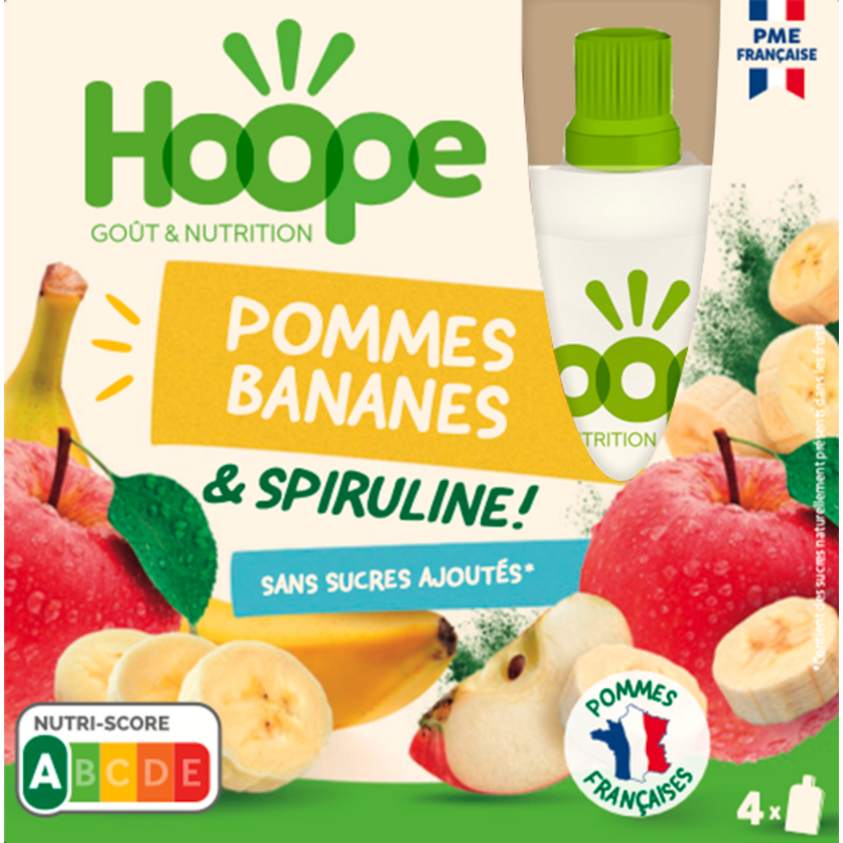 Gourde compote de pommes bananes et spiruline sans sucres ajoutés