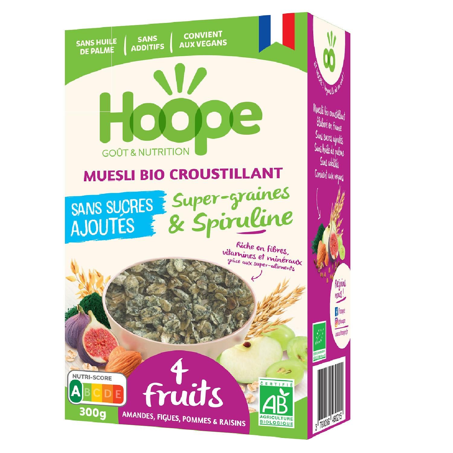 Muesli croustillant super graines et spiruline 4 fruits bio