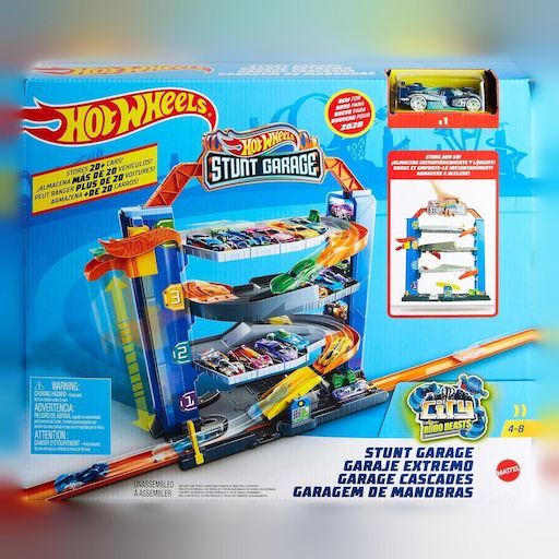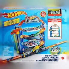 Le Hot Wheels Stunt Garage est un produit dérivé de jeux vidéo qui offre un garage multi-niveaux innovant pour les enfants. Ce garage de quatre étages permet de réaliser des cascades palpitantes et stimule la créativité. Il inclut une station-service et un véhicule Hot Wheels, fabriqués avec des mat
