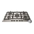 Table de cuisson gaz-Inox-Revetement inox-5 foyers- 10,5kW - L75 x P51cm-Allumage 1 main-Grilles fonte-Sécurité gaz-Commandes frontales par manettes