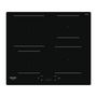 Table induction, noire, 60 cm, 4 zones, 4 boosters dont 1 de 3 kW, 9 niveaux de puissance, minuteur, cadre neutre, câble fourni, puissance totale 7200 W