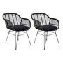 4 Fauteuils en polyrotin de 82 x 60 x 57 cm avec pieds noirs en acier. Ces 4 chaises de jardin sont vendues avec leur coussin noir.