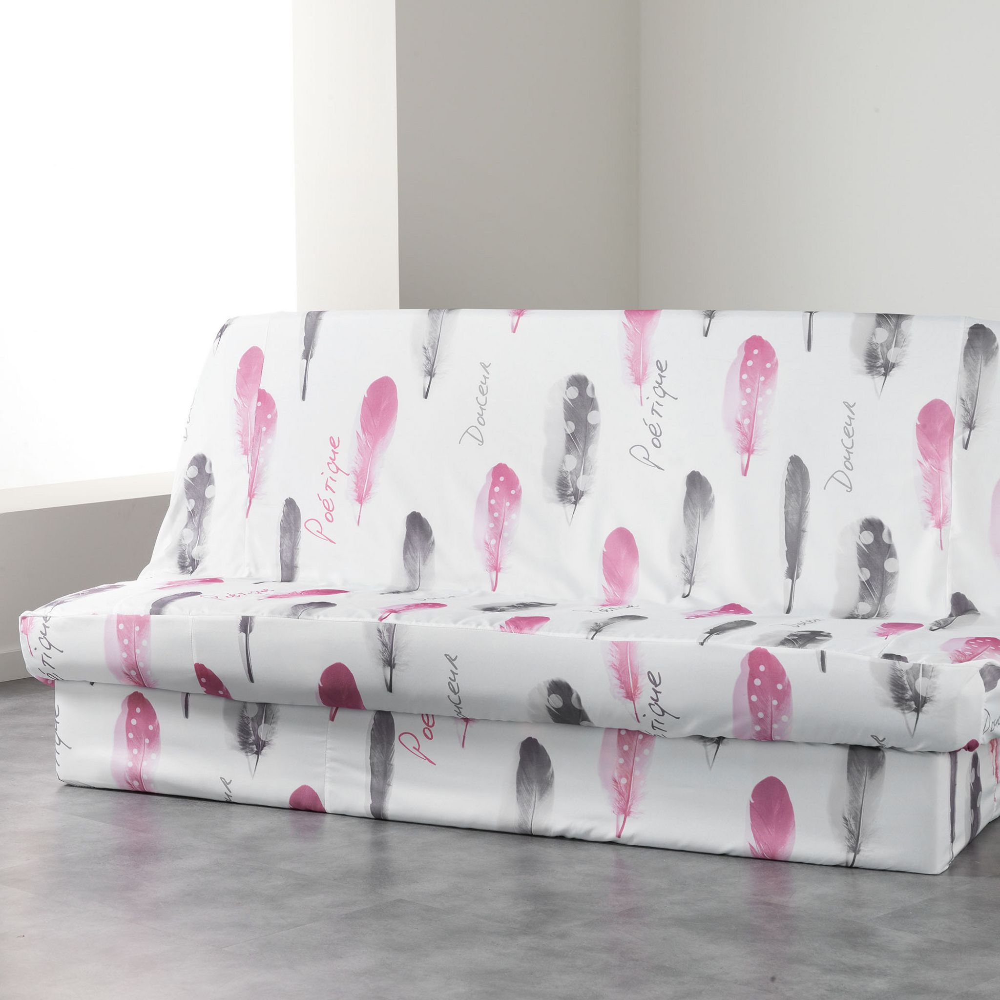 En savoir +Motif ravissant, couleurs douces et raffinées... une housse pour clic-clac "pur charme", jolie façon de donner un coup de neuf à votre banquette (et à toute votre pièce !) à peu de frais. Une housse facile à poser, livrée avec sa bande-socle, à s'offrir sans hésiter avec les coussins "plumes" coordonnés : effet déco garanti !
