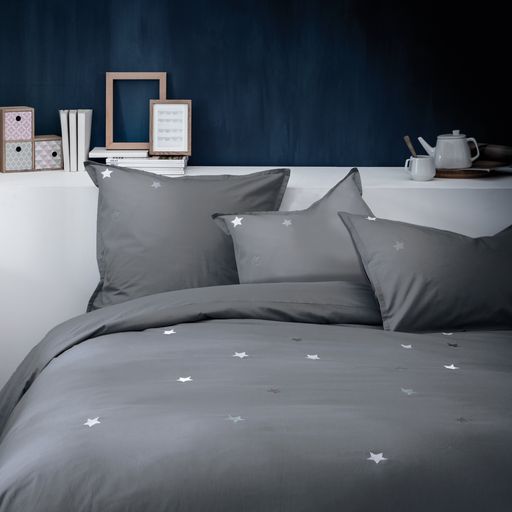 Housse de couette brodée étoiles en coton 57 fils DOUCE NUIT