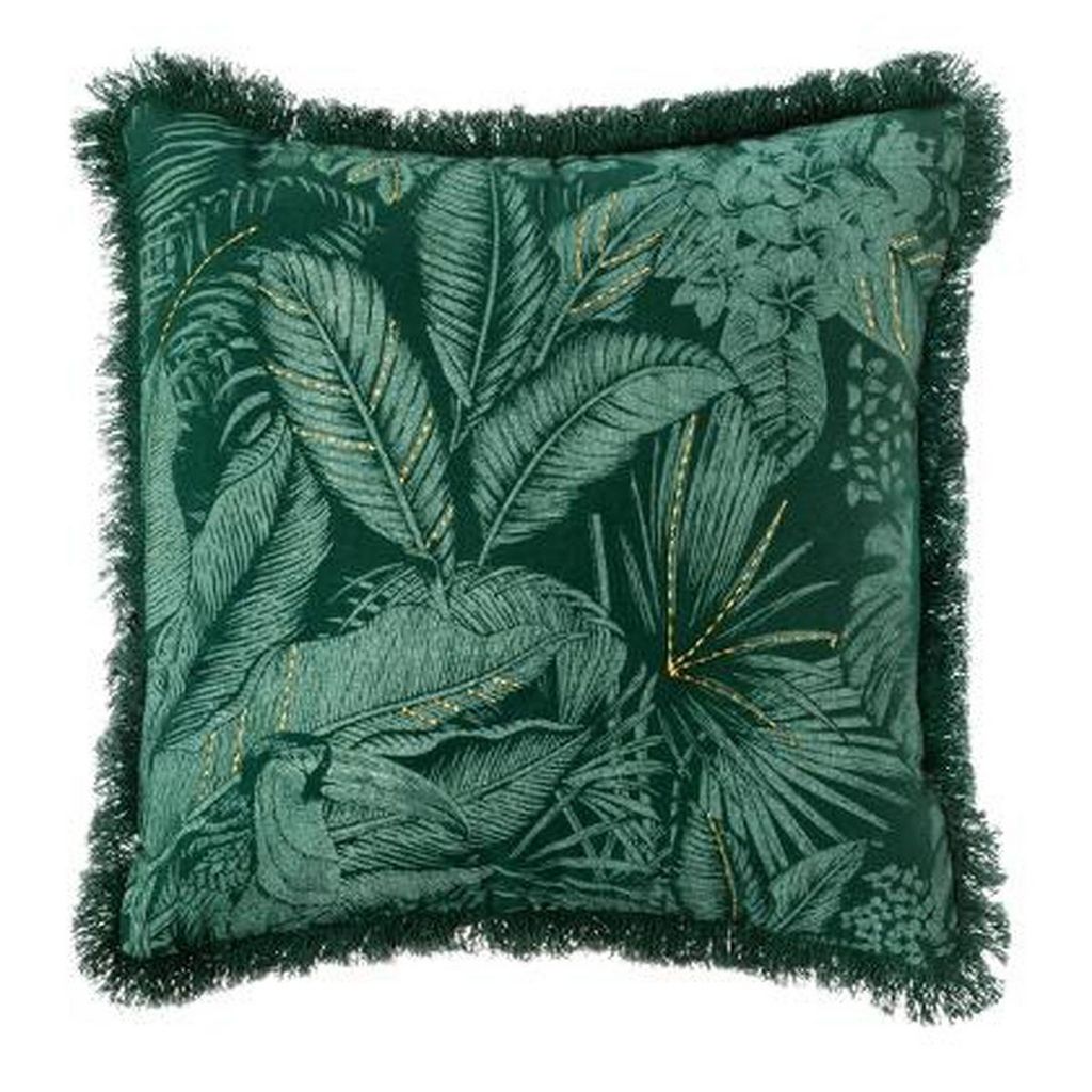 En savoir +Pour donner une nouvelle vie à un coussin usagé ou juste pour changer, quoi de plus simple que de lui offrir une nouvelle housse ? Avec son camaïeu de verts rafraîchissant, ses franges et ses broderies, celle-ci donnera un joli coup de peps à votre déco, en un clin d'oeil et à peu de frais !