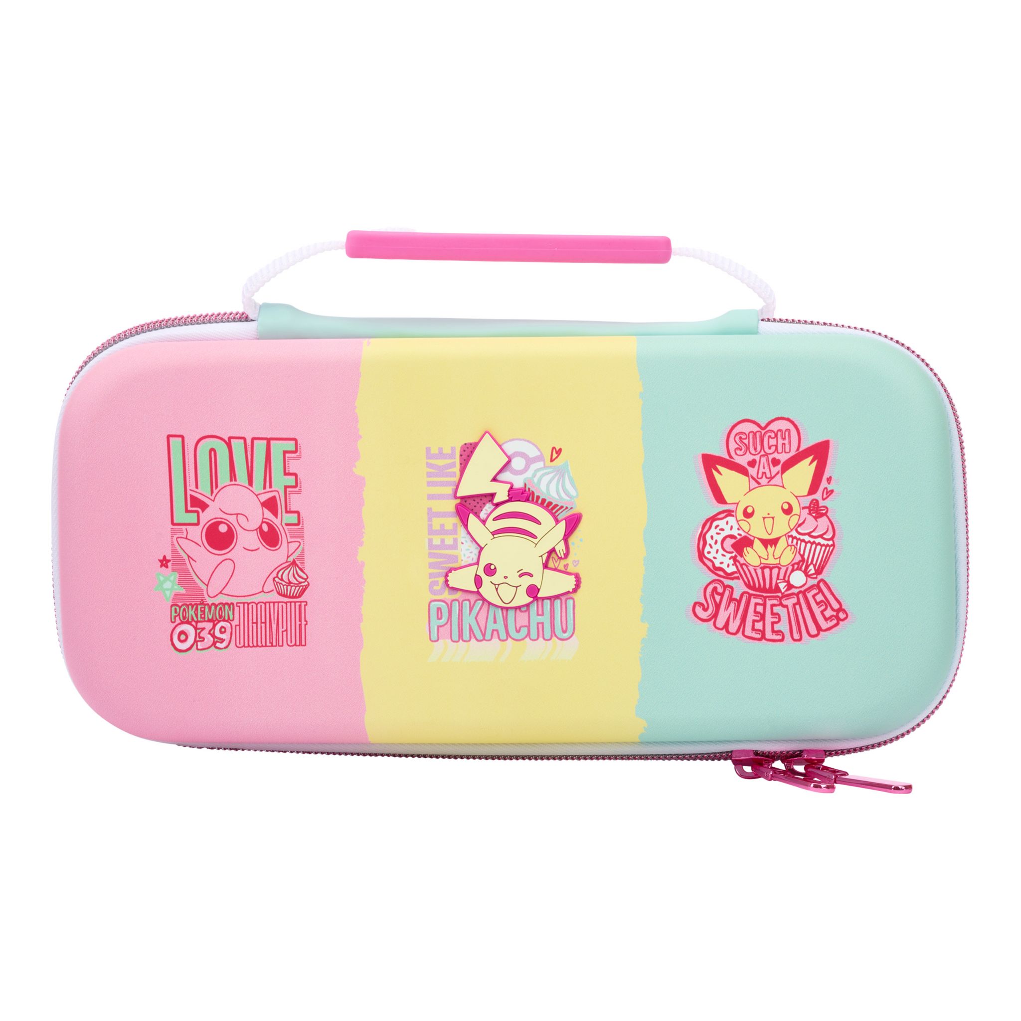 L'étui PowerA pour Nintendo Switch, Switch Lite et OLED est un accessoire robuste et pratique conçu pour les fans de Pokémon. Il protège la console grâce à une coque résistante et une doublure en feutre douce. Cet étui coloré présente des motifs adorables de personnages Pokémon et offre un rangement pour jusqu'à neuf cartes de jeu. Il comprend un stand intégré pour le mode bureau, une poignée en caoutchouc, une fermeture éclair durable à double sens, ainsi qu'une protection intégrée pour l'écran. Léger et compact, c'est le compagnon idéal pour transporter et protéger votre console lors de vos sessions de gaming.