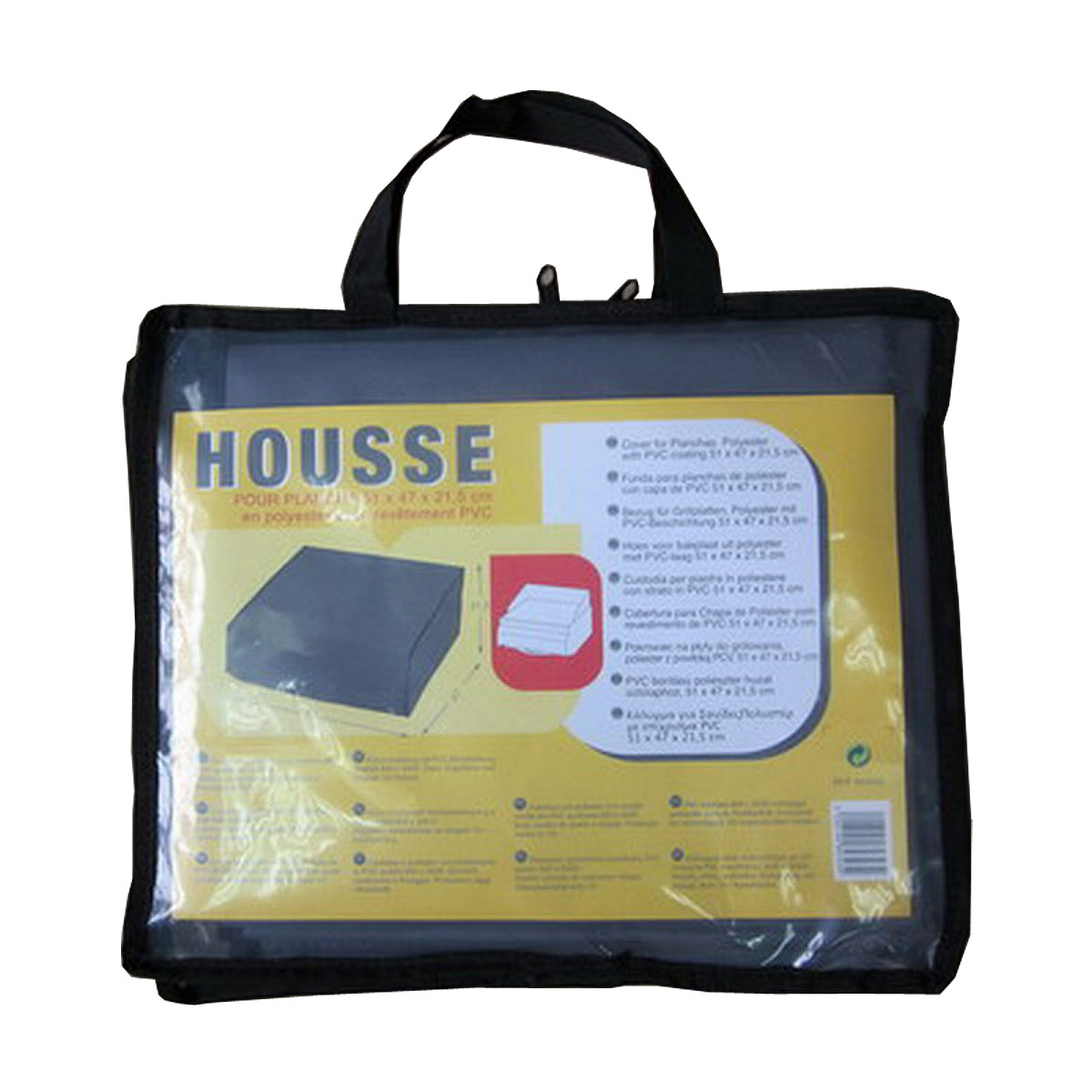 Cette housse de protection pour plancha à poser 1 feu est en polyester. Elle est garantie 1 an. Dimensions : 51 x 47 x 21.5 cm