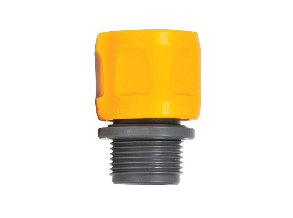 - Convertit la fin de tuyau en raccord femelle compatible avec le système de raccord rapide Hozelock.