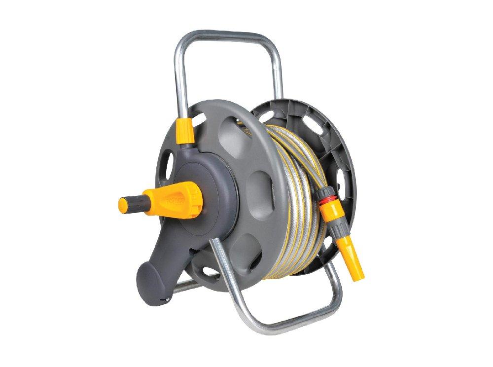 Dévidoir deux en un fixation murale/portable enroulement manuel avec tuyau 25 m