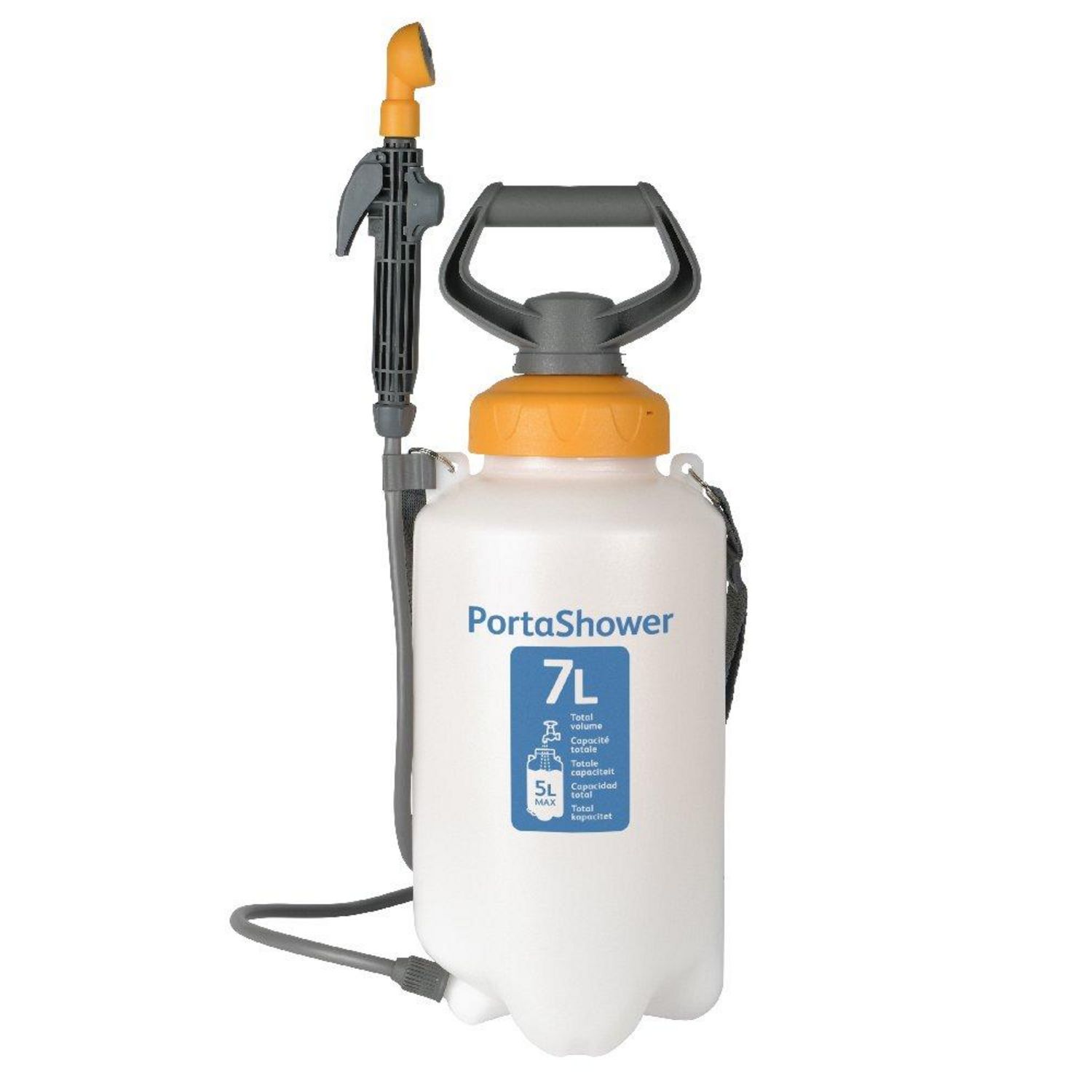 Douche portative PortashowerLe Portashower est une douche compacte et portable. Seulement 460mm de haut et facile à ranger. Idéal pour le camping et le caravaning.Plus produit :Idéal pour le camping et le caravaningUn jet manuel facile à contrôlerStockage intégré de poignée de lanceTuyau de 2m pour