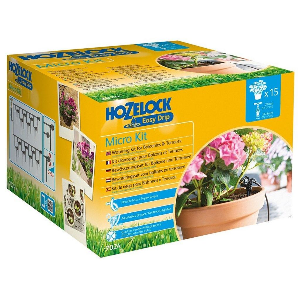Le Micro Kit vous fournit la solution idéale pour arroser vos pots, jardinières et paniers suspendus, en gagnant du temps, en vous fatiguant moins et en économisant de l&rsquo,eau.