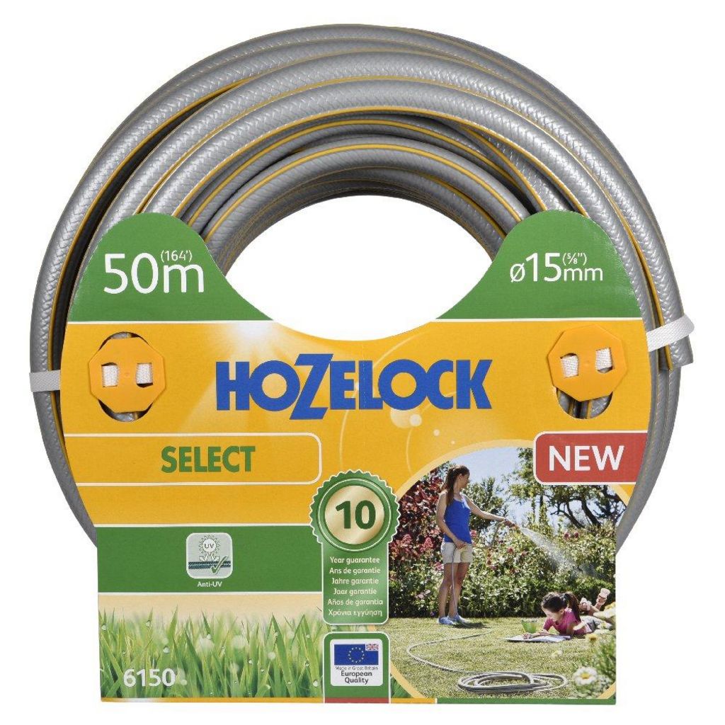 Tuyau d&rsquo,arrosage Hozelock Select anti UV gris bandes 3D jaunes 19mm 50mTuyau multi-usage très résistant pour l&rsquo,arrosage des jardins.Plus produit :Tuyau résistant pour une utilisation généraleTrois couches avec renforcement guipéRésistance aux intempéries, protection contre les UV et le g