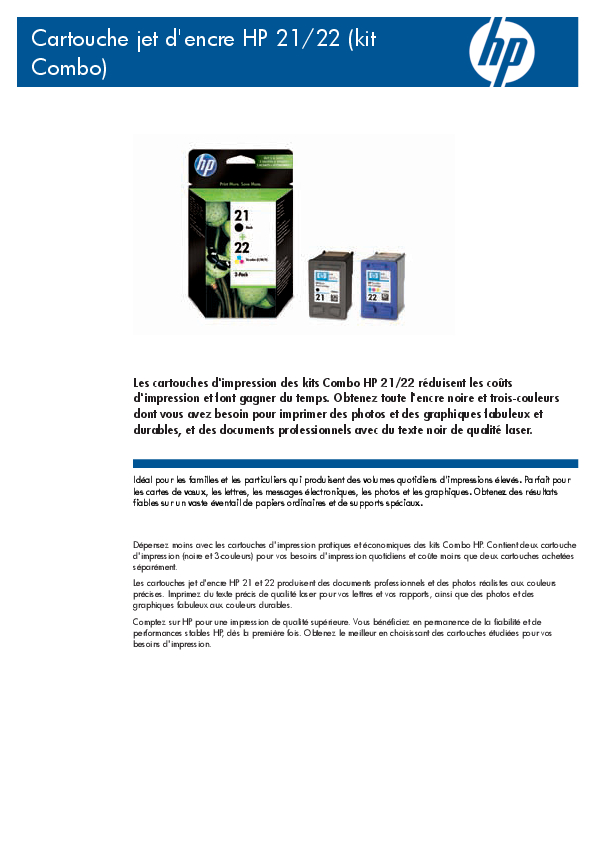 Pack de 2 Cartouches d'Encre HP 21 / 22 Noire et Trois Couleurs Authentiques (SD367AE)