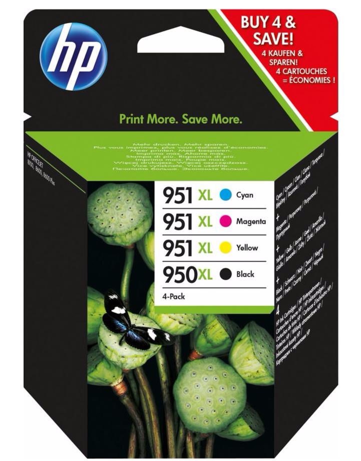 Pack de 4 Cartouches d'Encre HP 950XL/951XL Noir, Cyan, Magenta et Jaune grandes capacités Authentiques (C2P43AE)