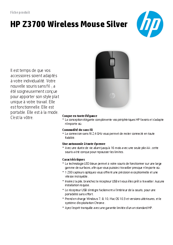 Compatible avec une large gamme de systèmes d'exploitation, y compris Windows 7, 8, 10, 11, macOS et Chrome OS, cette souris est idéale pour divers environnements informatiques. Elle est également couverte par une garantie commerciale HP de deux ans, offrant ainsi une sécurité supplémentaire pour les utilisateurs.