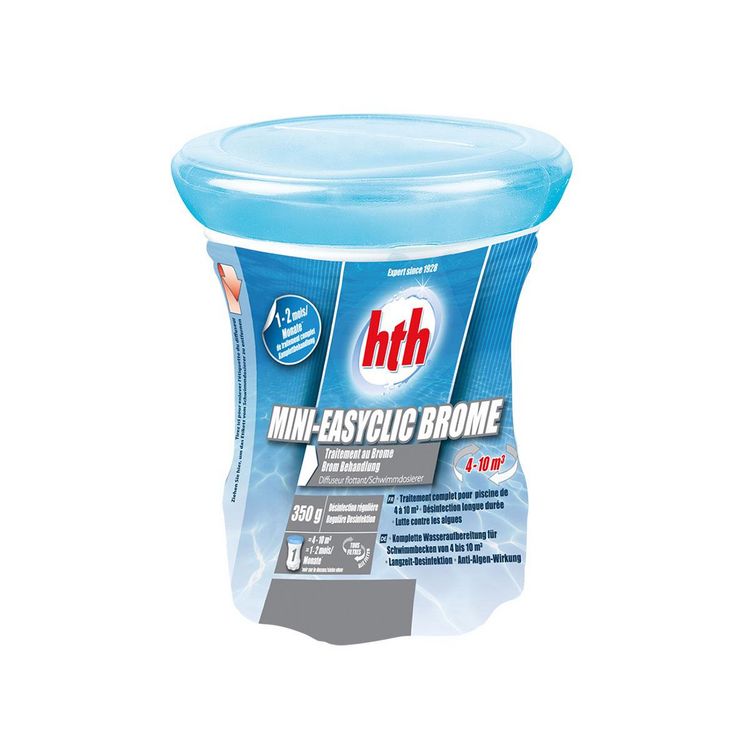 Traitement multi-actions au brome en diffuseur flottant Easyclic pour 4 à 10 m³ - HTHPermet de traiter une piscine de 4 à 10 m³ pendant 1 à 2 mois sans chlore actifDiffuseur flottant de brome de 350 gDésinfection régulière extra longue duréeDétruit les bactéries, virus et champignons dans l'eauComba