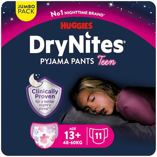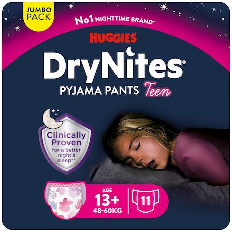 La gamme DryNites contre l'énurésie s'agrandit : la nouvelle taille 13 ans et + offre aux adolescents des sous-vêtements de nuit adaptés à leur morphologie.