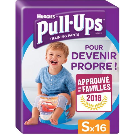 Sa 1ère culotte de fille ou de garçon avec ses dessins Disney© préférés! NOUVEAU – une technologie absorbante adaptée apportant une brève sensation d’humidité à votre enfant pour qu’il puisse enfin faire la différence entre sec et mouillé Fines et pratiques, leurs côtés super extensibles permettront à votre enfant de les enfiler facilement, comme un grand Des côtés détachables et repositionnables, pratiques pour les parents pour s’assurer qu’il n’y a pas eu de petits accidents… Huggies Pull-Ups Couches-Culottes d'apprentissage de la propreté - Taille S Garçon x16 (8/15kg)
