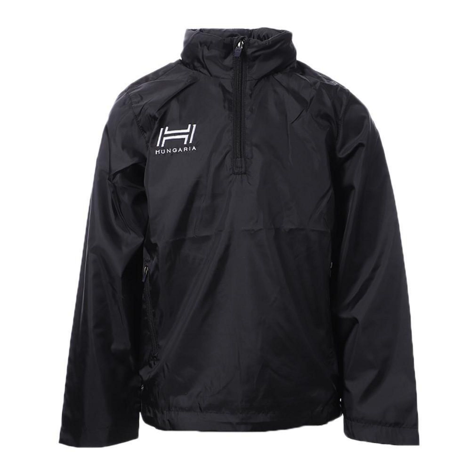 Coupe-vent 1/4 zip noir pour enfant de la marque Hungaria ! Fermeture zippée Capuche au niveau du col, possibilité de la ranger, fermeture zippée 2 poches latérales zippées Composition : 100% polyester