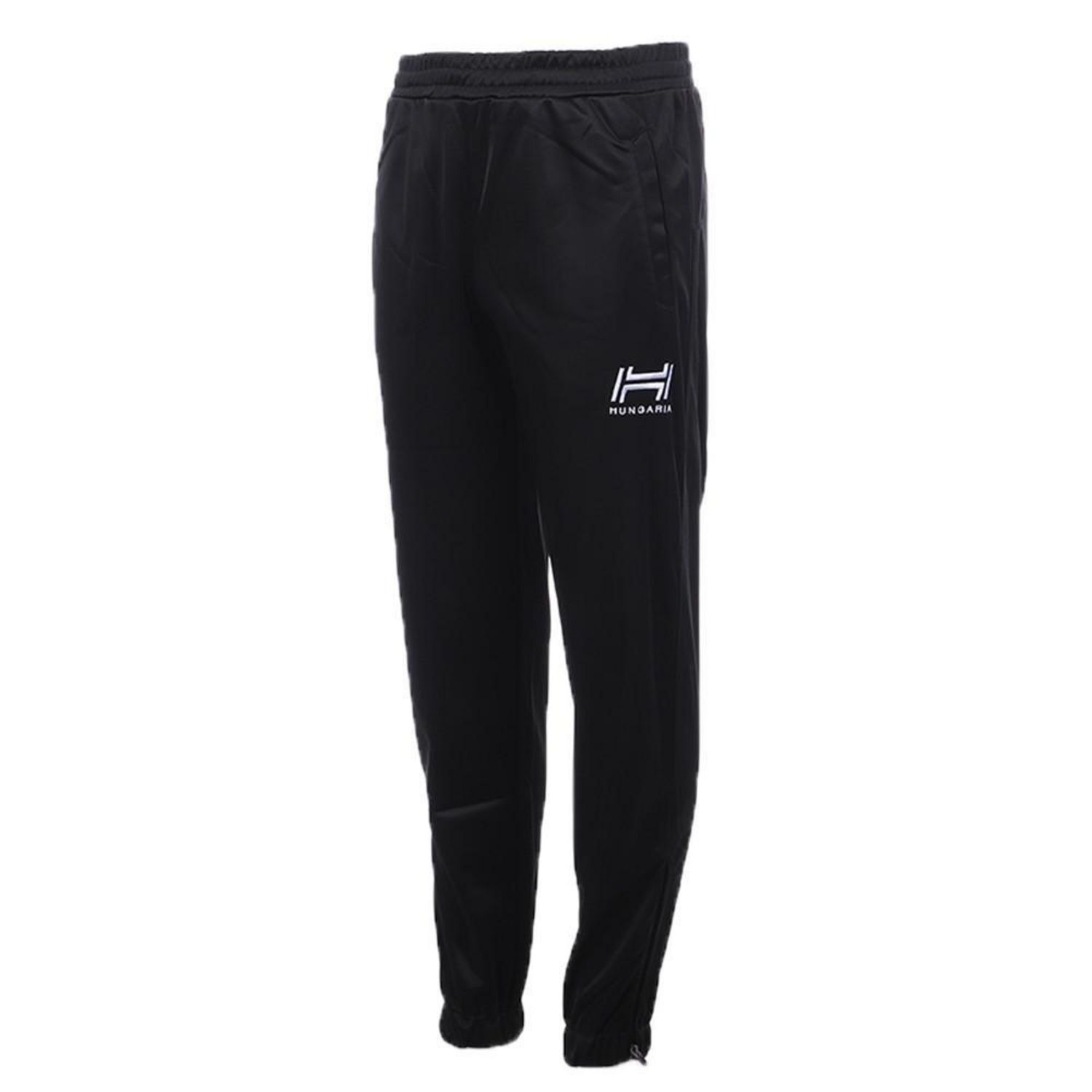 Jogging noir pour garçons de la marque Hungaria ! Coupe près du corps Ceinture élastique avec cordon de serrage pour un maintien optimal Poches latérales non zippées Logo Hungaria brodé en blanc sur la cuisse gauche Zip d'ouverture sur le bas du jogging (15cm) Composition : 100% polyester