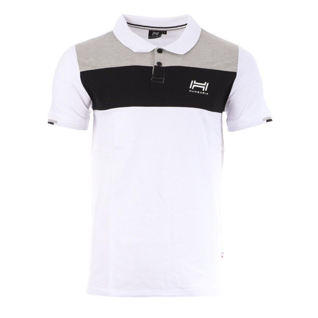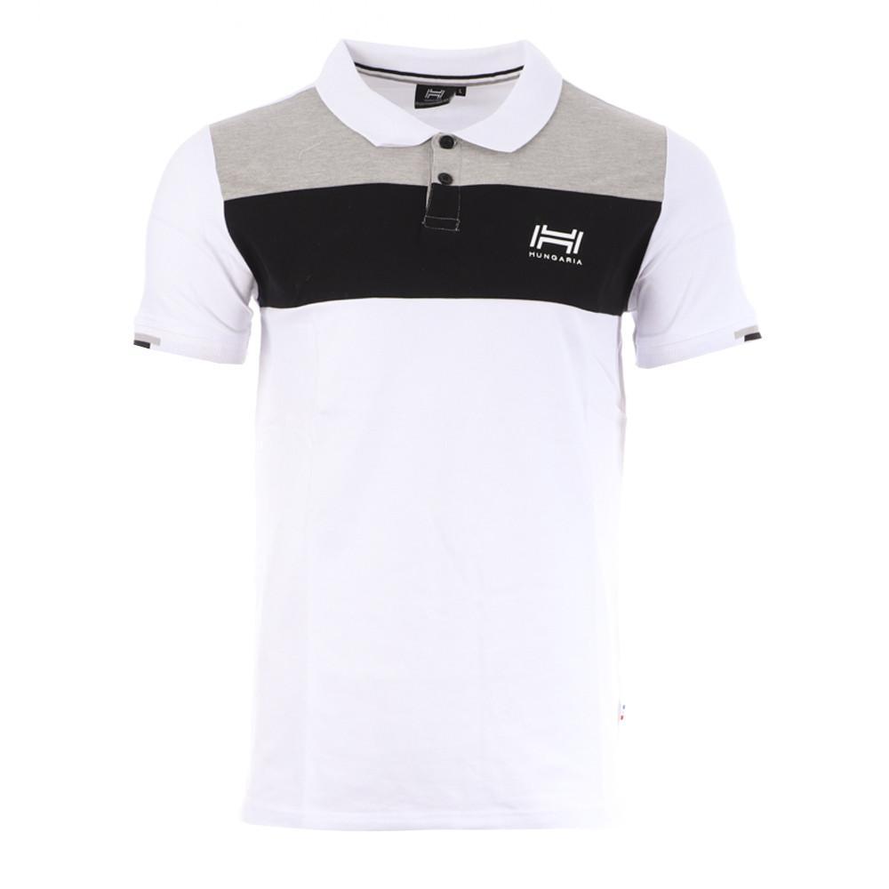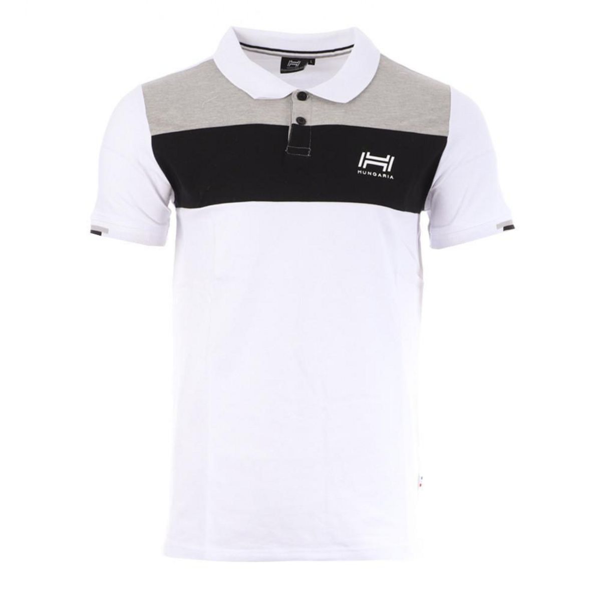 Polo homme de la marque Hungaria ! Couleurs : Noir/Gris/Blanc Coupe altique Col boutonné Manches courtes Logo Hungaria thermocollé Composition : 48% coton, 47% polyester, 5% élasthanne