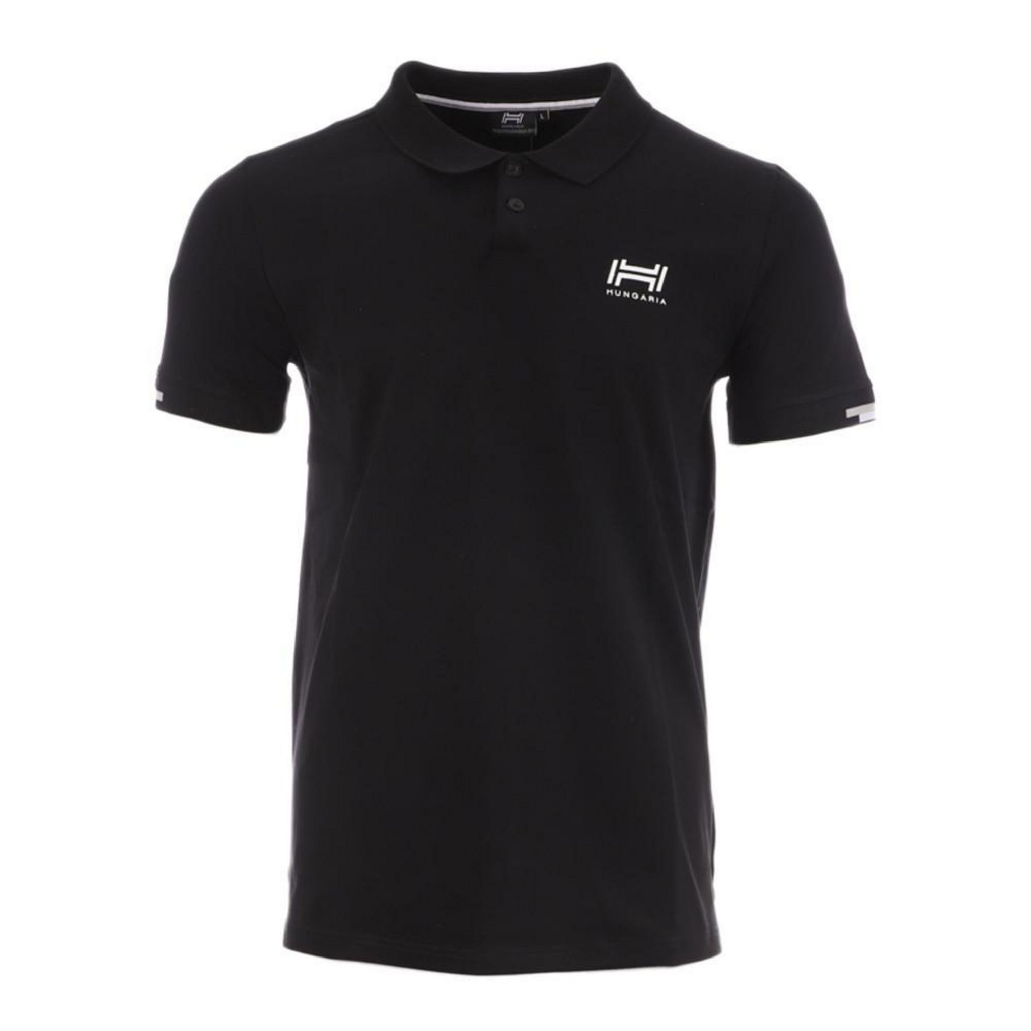 Optez pour le polo homme de la marque HUNGARIA Coloris : Noir Col 2 boutons Manches courtes Composition : 95% Coton, 5% Élasthanne