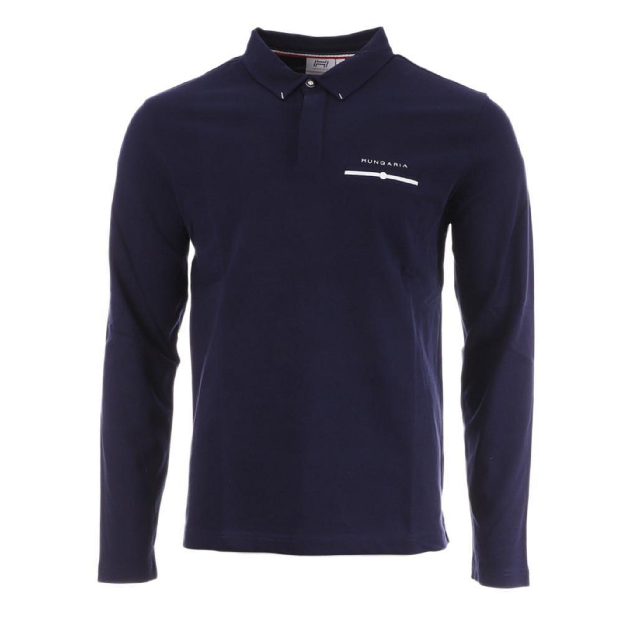 Polo pour homme de la marque Hungaria ! Couleur : Marine Coupe altique Col boutonné Manches longues Fausse poche sur la poitrine Composition : 100% coton