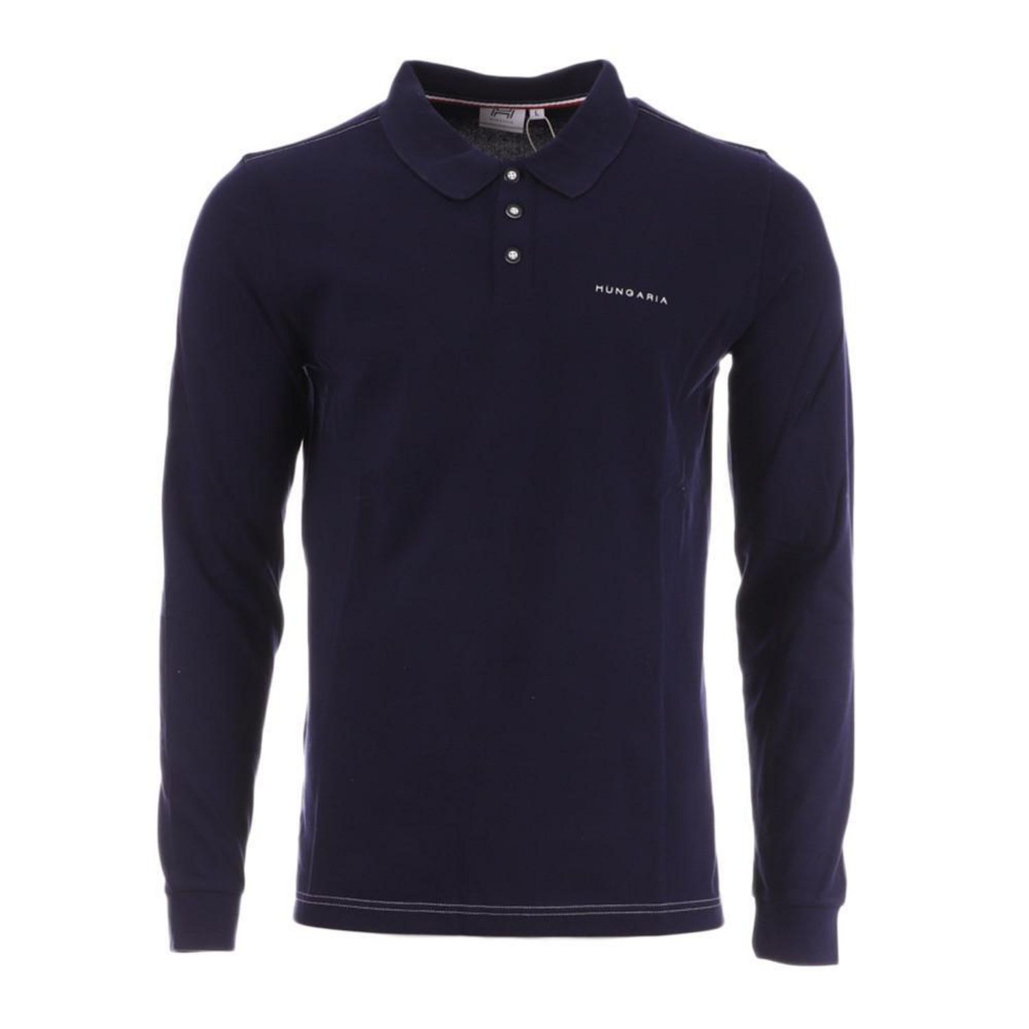Craquez pour ce polo homme de la marque HUNGARIA à prix bas ! Coloris : Marine Manches longues Col 3 boutons Inscription Hungaria sur la poitrine Composition : 100% Coton