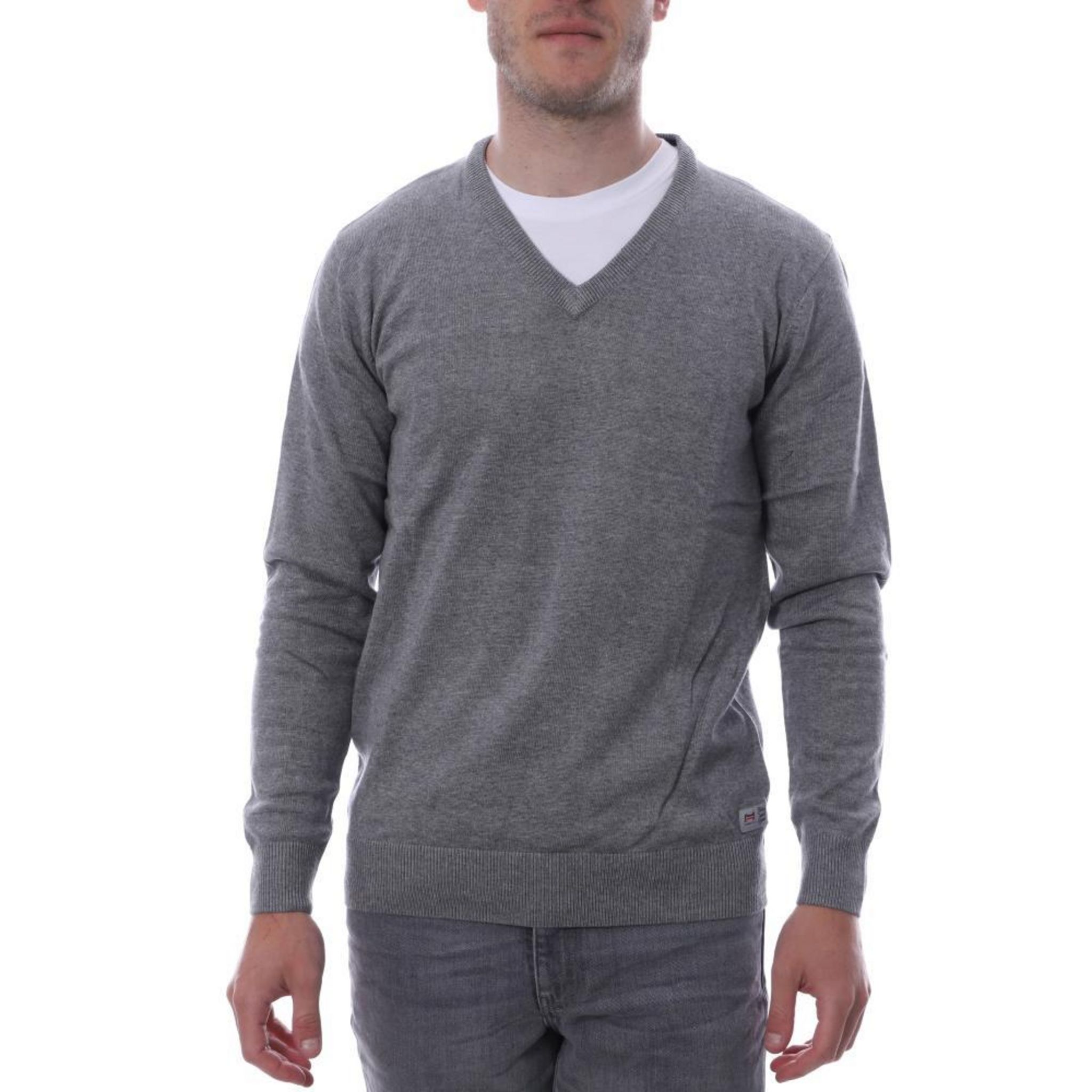 Pull Over Gris Homme Hungaria V Neck Manche Longue Col V 55% acrylique, 45% coton Manches et col Côtelés