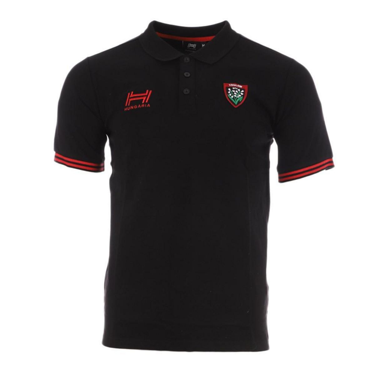 Polo pour homme de la marque Hungaria ! Couleur : Noir/Rouge Coupe altique Manches courtes Blason RCT brodé Composition : 100% coton