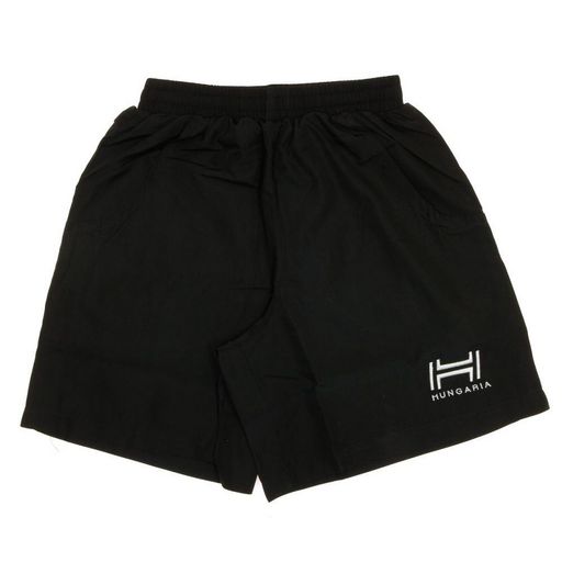 Short de sport NOIR pour enfant de la marque Hungaria ! Idéal pour le sport à l'école ! Ceinture élastique avec cordon de serrage Logo brodée HUNGARIA sur la cuisse droite Composition : 100% polyester