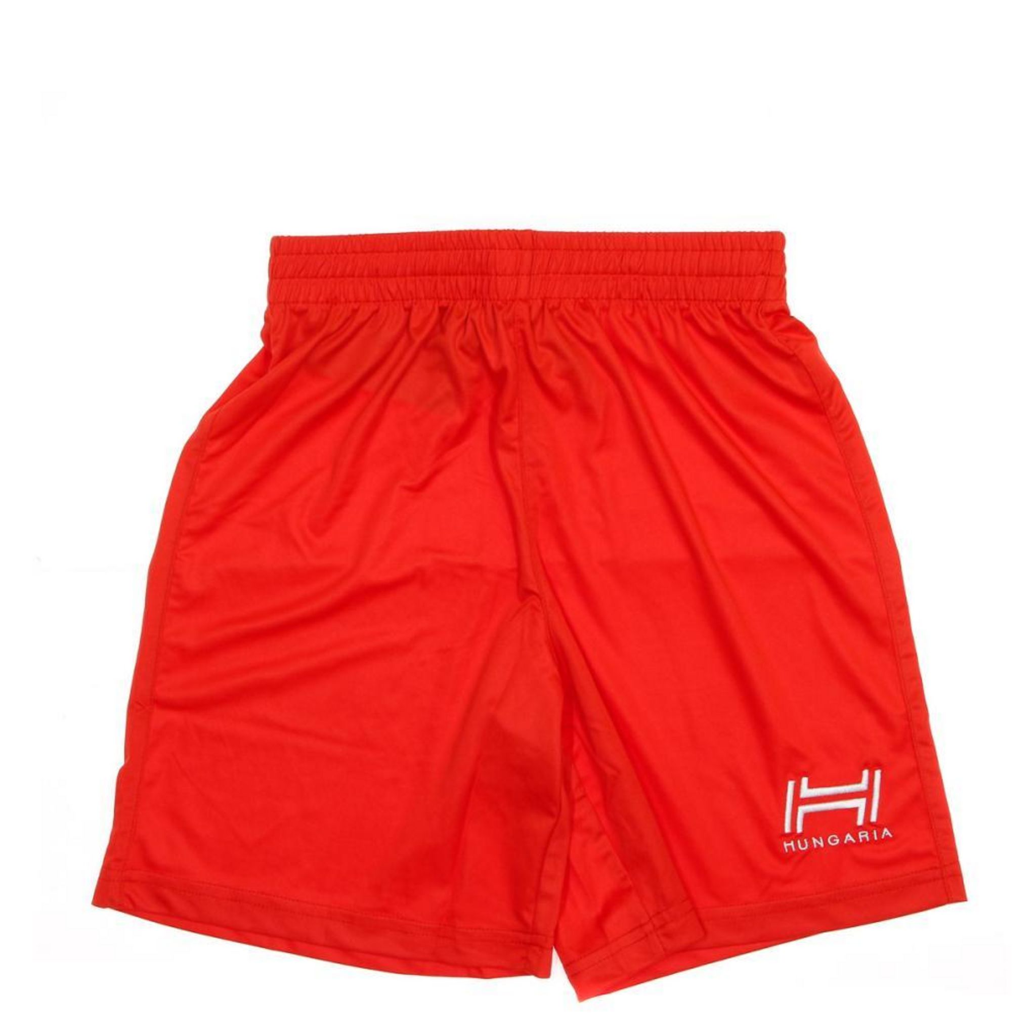 Short rouge clair pour garçon de la marque Hungaria ! Ceinture élastique avec cordon de serrage Logo Hungaria brodé en blanc sur la cuisse gauche Composition : 100% polyester