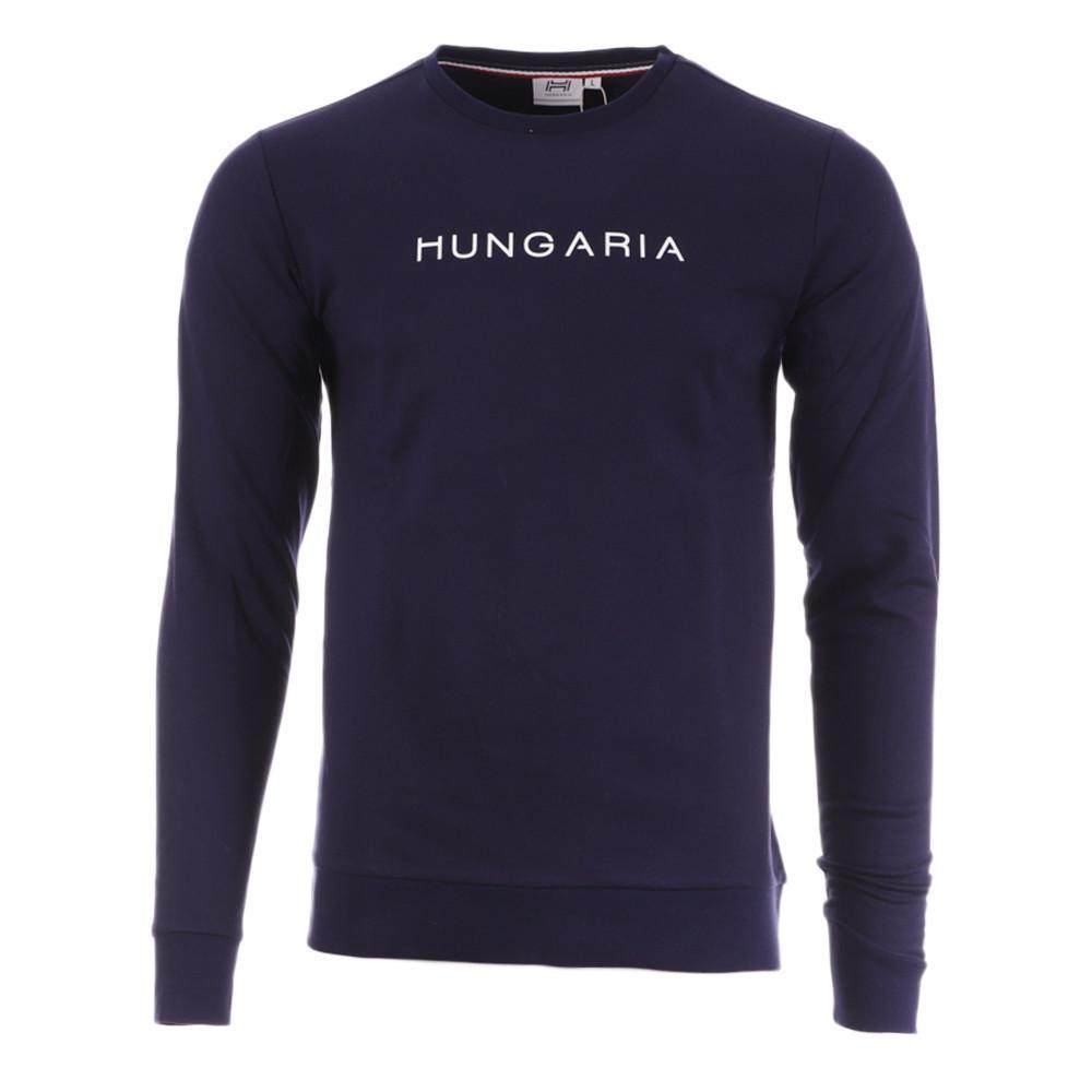 Optez pour le sweat homme de la marque Hungaria Manches longues Col rond Coloris : Marine Inscription Hungaria sur l'avant Composition : 78% coton , 17% polyester , 5% élasthanne