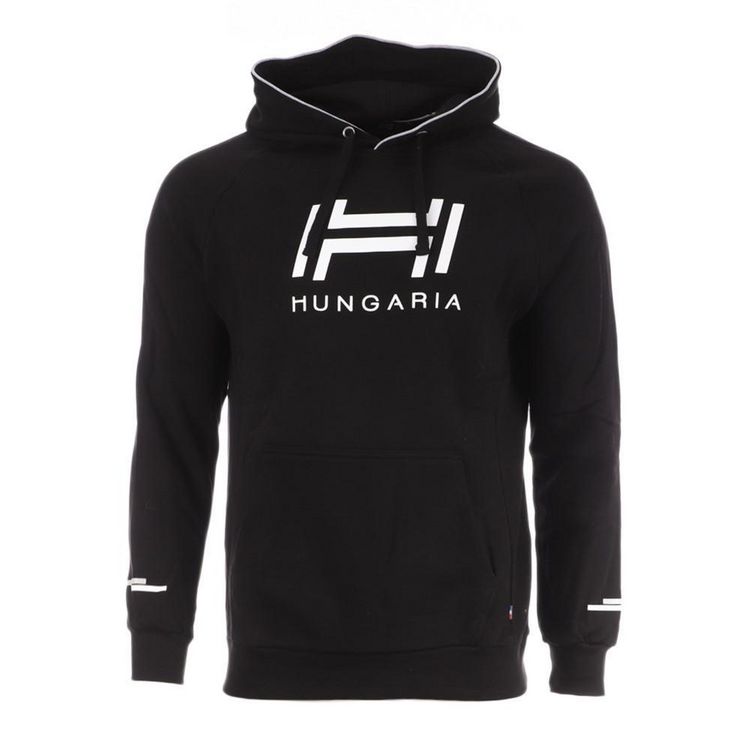 Sweat homme de la marque Hungaria Manches longues Capuche Coloris : Noir Inscription Hungaria sur l'avant 1 poche kangourou Composition : 100% coton