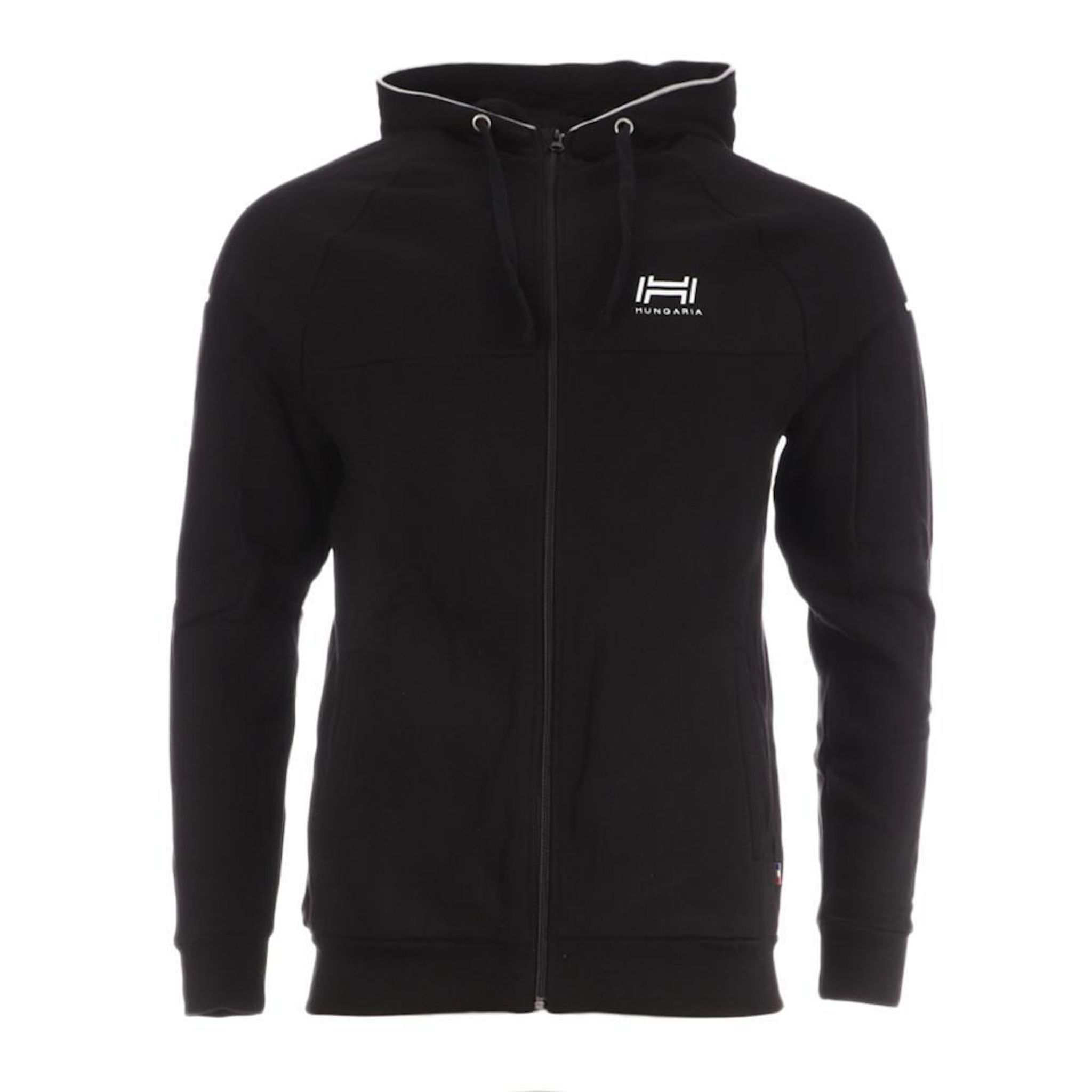 Craquez pour le sweat zippé de la marque HUNGARIA !- Coloris : Noir- Manches longues- Col capuche- Zip sur toute la longueur- Logo Imprimé sur la poitrine- Composition : 80% Coton, 20% PolyesterAttention, cet article a tendance à tailler petit. Il est conseillé de prendre une taille au dessus de cel