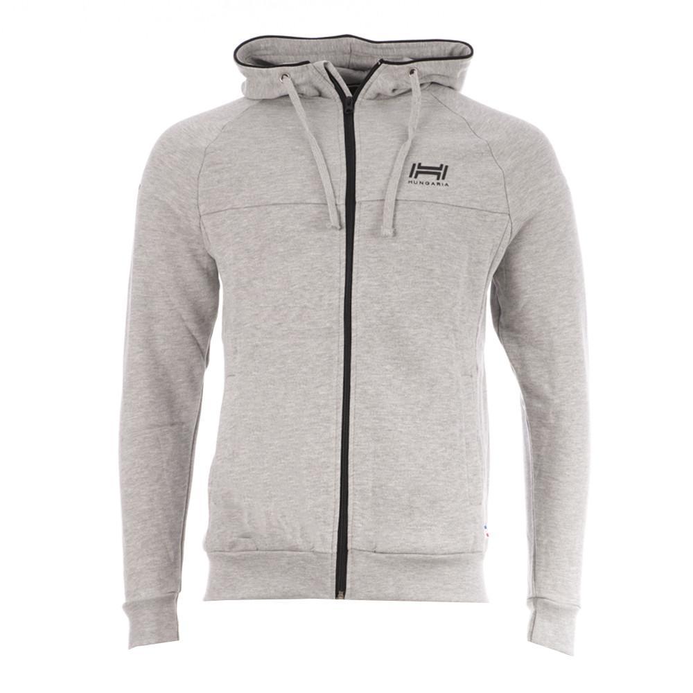 Craquez pour le sweat zippé de la marque HUNGARIA ! Coloris : Gris Manches longues Col capuche Zip sur toute la longueur Logo Imprimé sur la poitrine Composition : 80% Coton, 20% Polyester