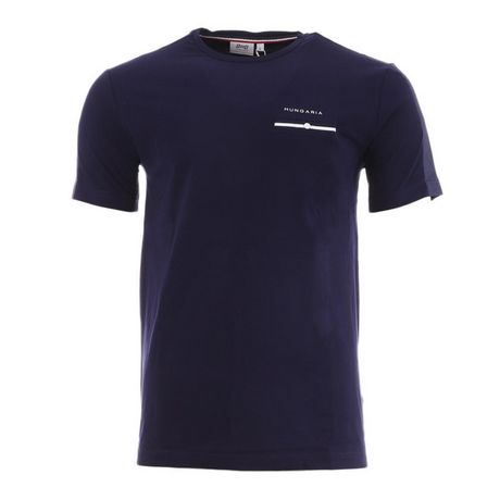 Optez pour le T-shirt homme de la marque HUNGARIA ! Coloris : Marine Col rond Manches courtes Logo imprimé sur la poitrine 1 fausse poche poitrine Composition : 100% Coton
