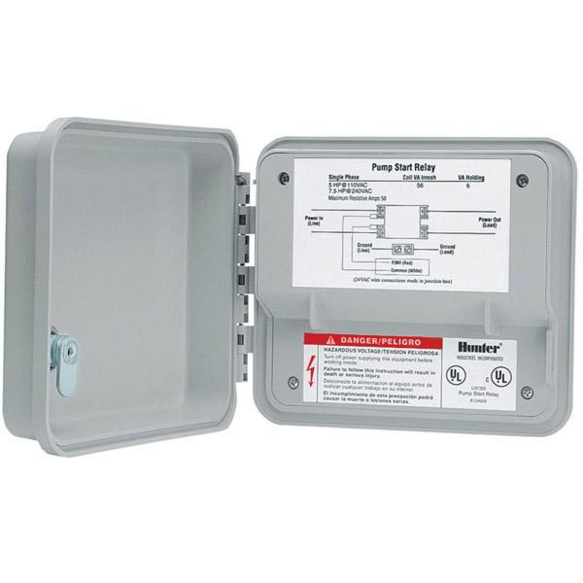Hunter PSR-22 Lorsqu'un système nécessite l'utilisation d'un surpresseur, il est impératif de faire appel à un relais destiné à activer la pompe à chaque usage. Le relais de démarrage de pompe PSR de Hunter a été créé pour offrir cette fiabilité nécessaire, de même qu'un boîtier NEMA verrouillable, à un tarif abordable.