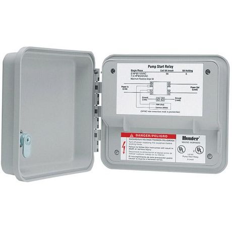 Hunter PSR-22 Lorsqu'un système nécessite l'utilisation d'un surpresseur, il est impératif de faire appel à un relais destiné à activer la pompe à chaque usage. Le relais de démarrage de pompe PSR de Hunter a été créé pour offrir cette fiabilité nécessaire, de même qu'un boîtier NEMA verrouillable,